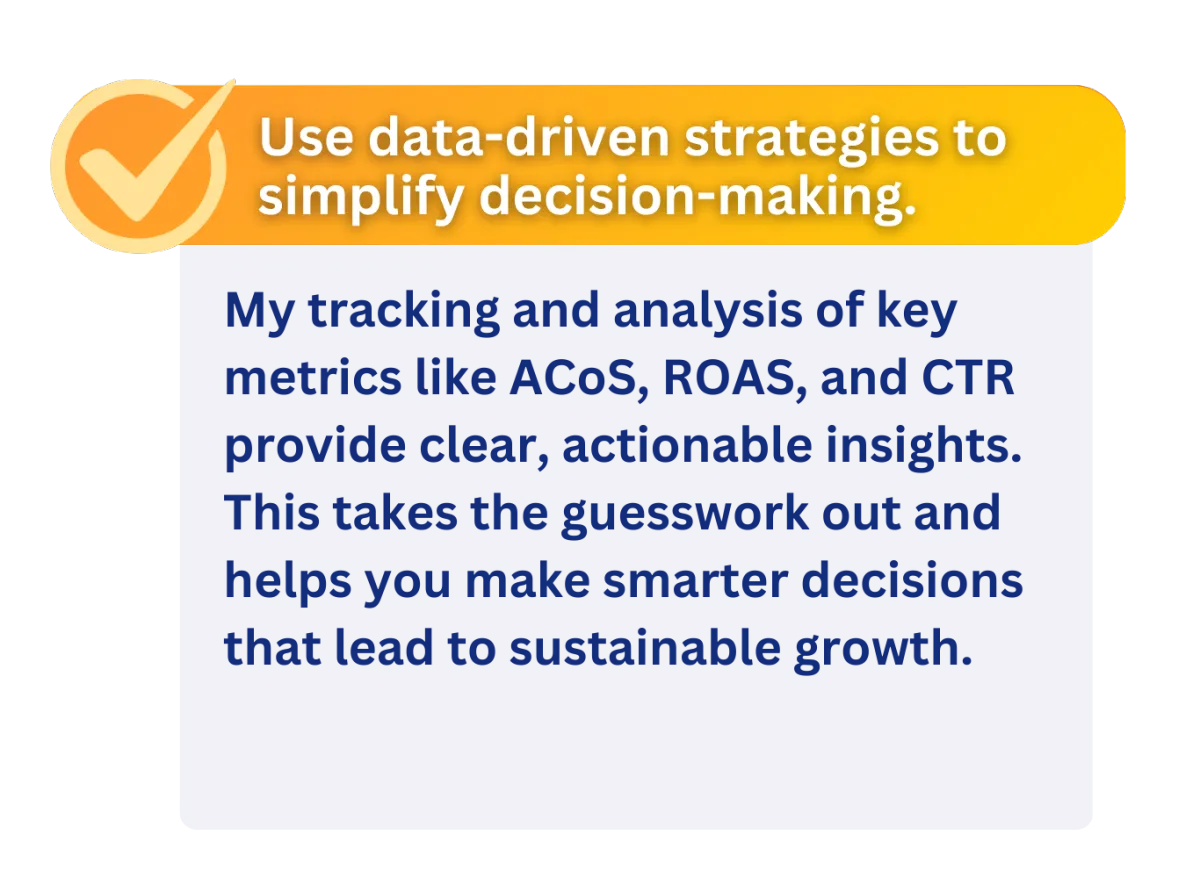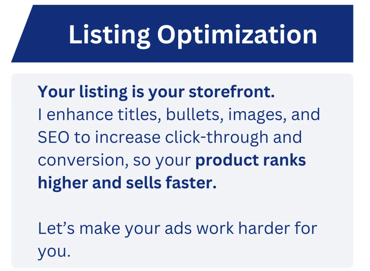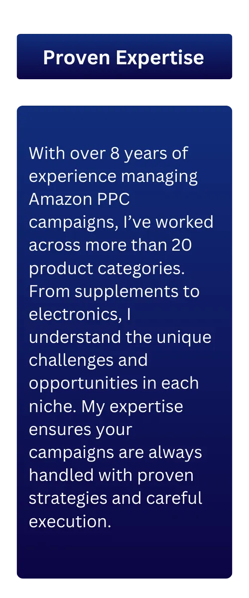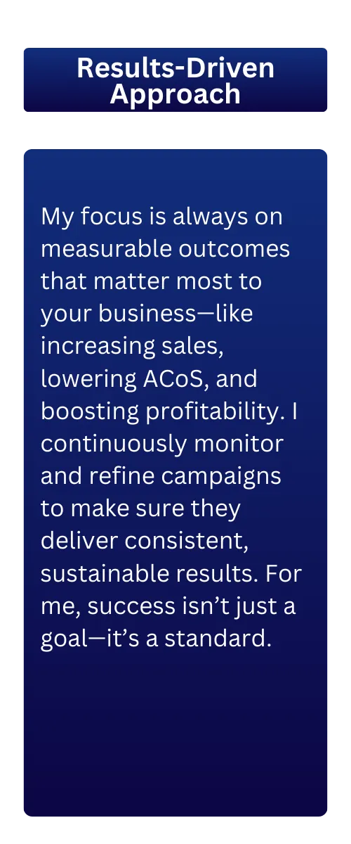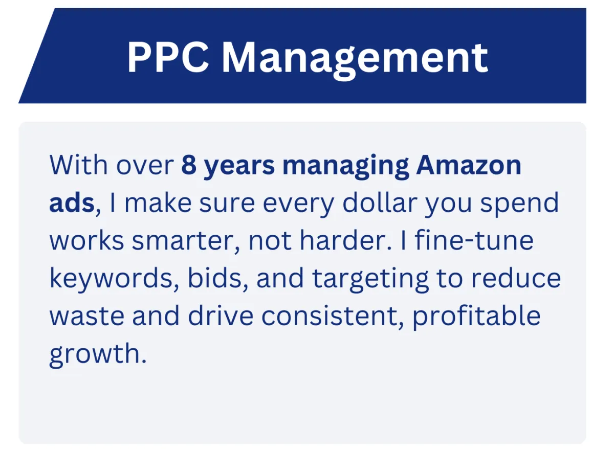 My mission is simple: turn your PPC campaigns and product listings into real growth drivers. I know the challenges Amazon sellers face—rising ACoS, wasted ad spend, and listings that don’t convert—and I provide tailored solutions that deliver measurable results.