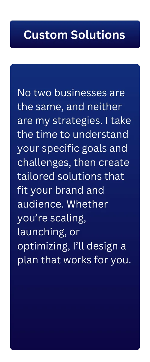 Absolutely. Whether you’re starting or scaling, I tailor strategies to match your business.